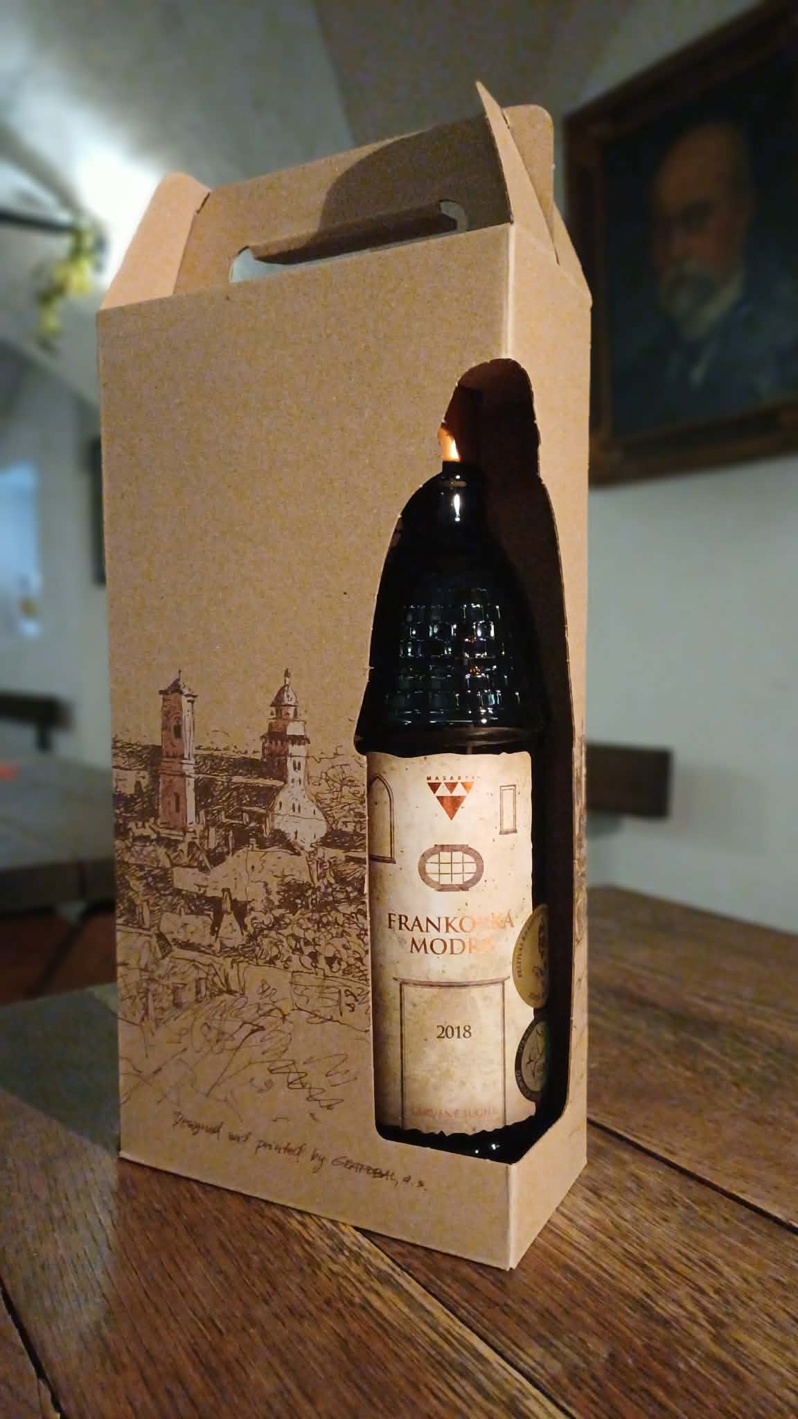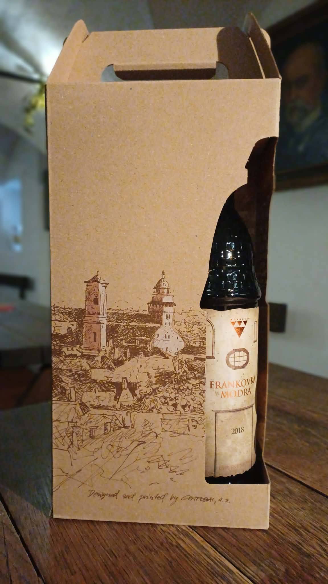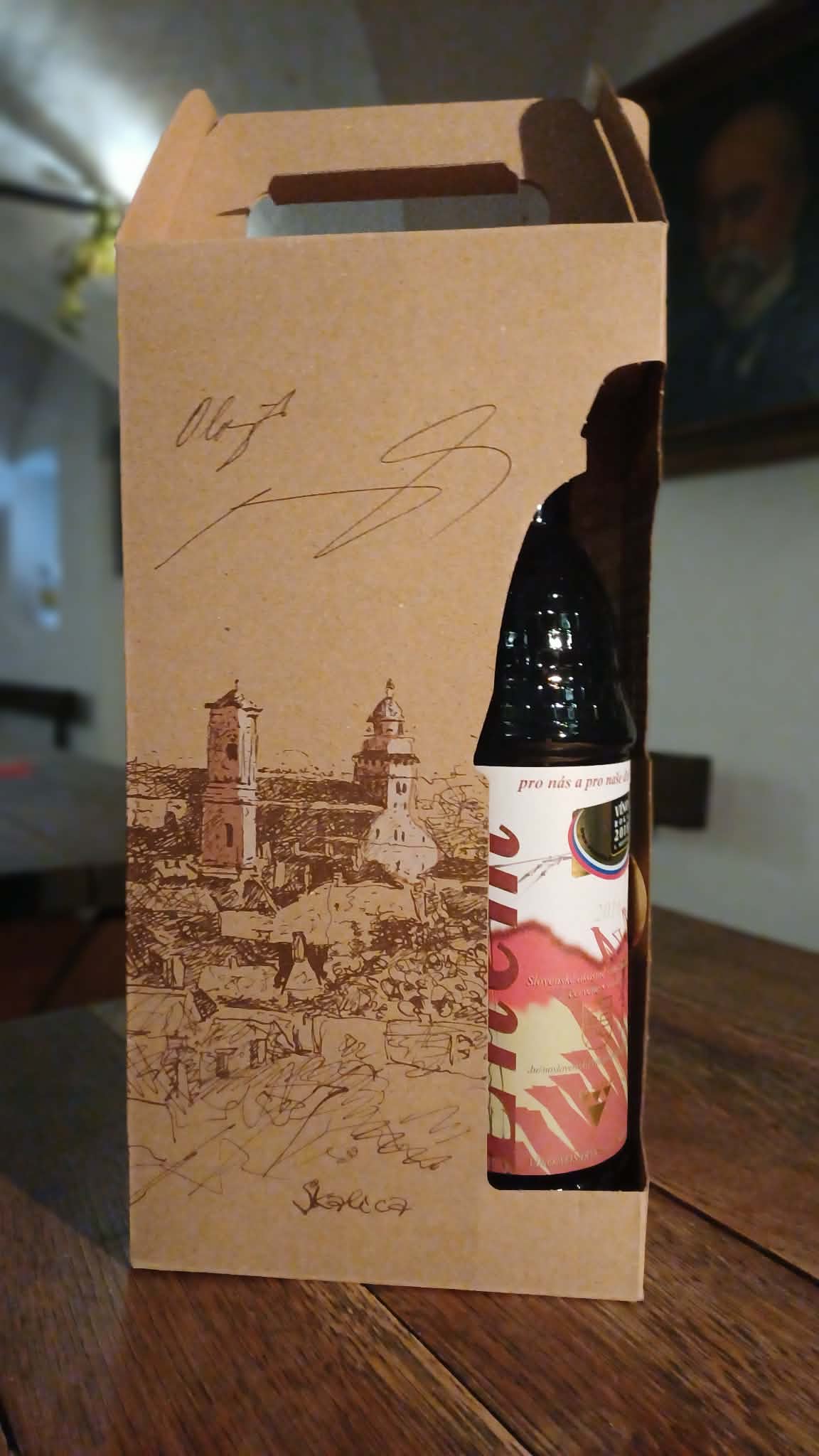 - Darčekový papierový obal s motívom Skalice a výrezmi na špeciálne rotundové fľaše