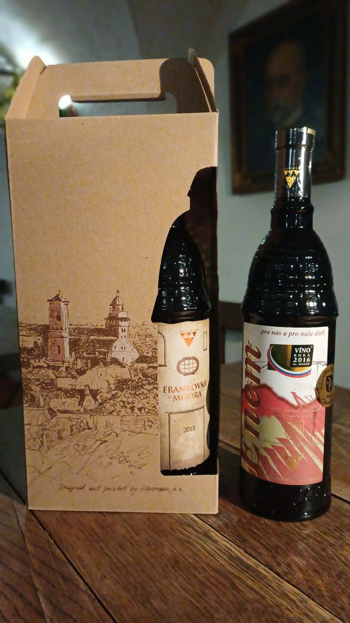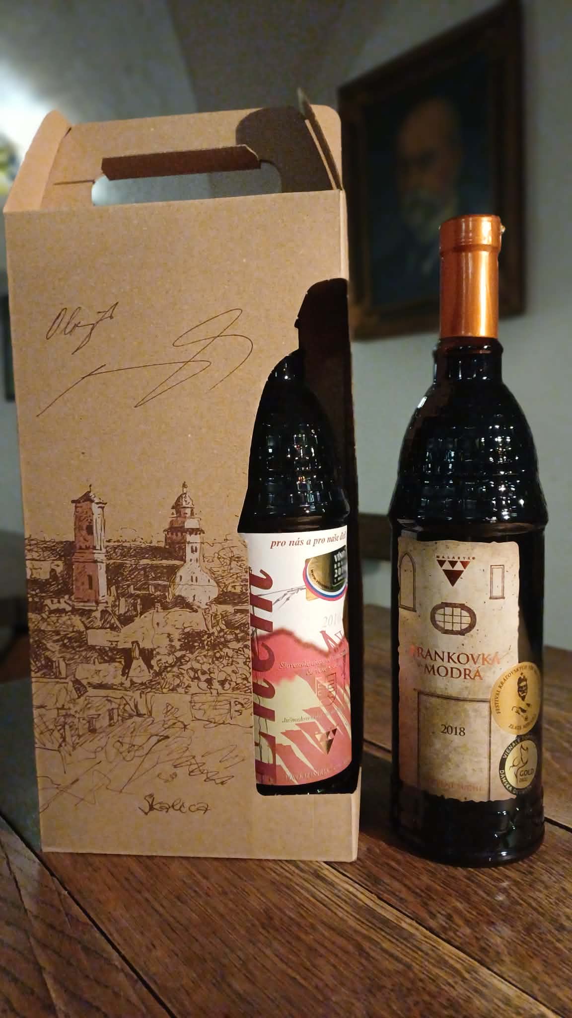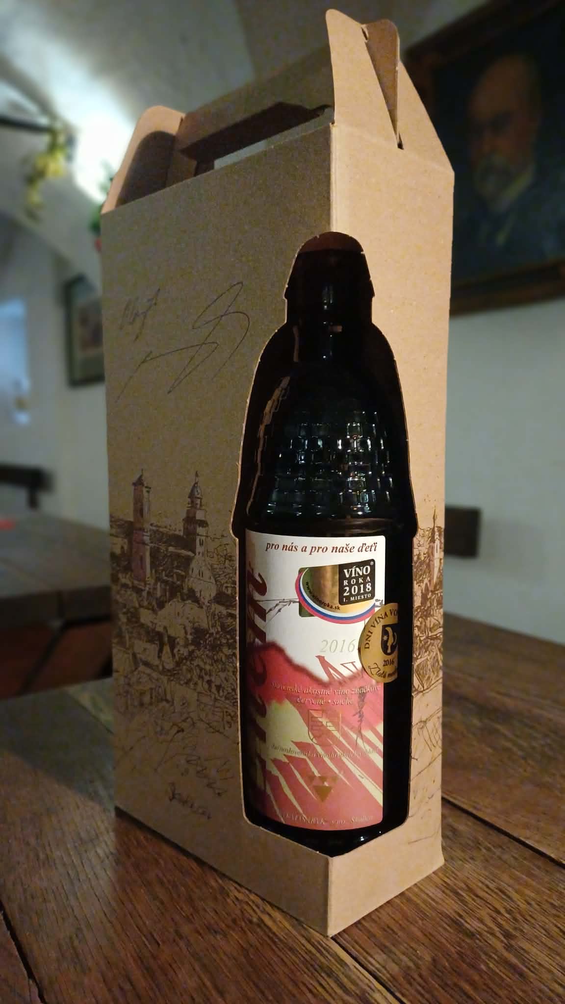 - Darčekový papierový obal s motívom Skalice a výrezmi na špeciálne rotundové fľaše